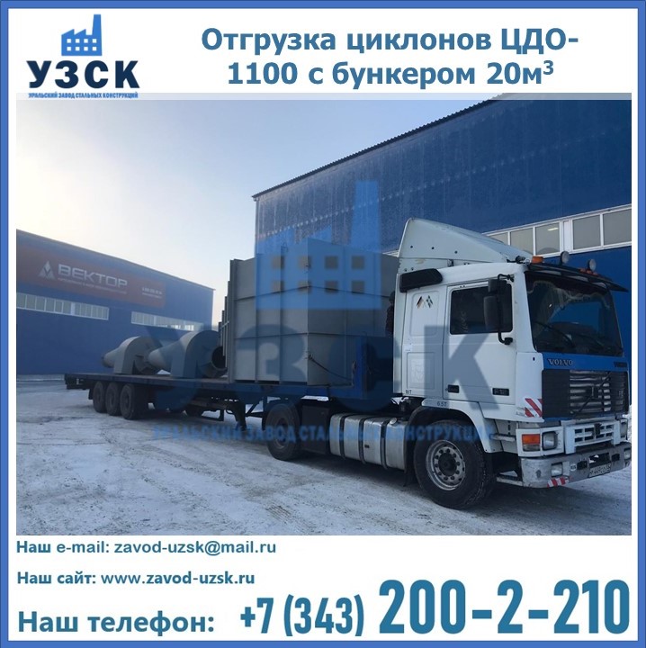 Циклоны ЦДО-1100 с бункером на 20 кубов были отгружены в декабре 2018 года в г. Новосибирск Ногинск.