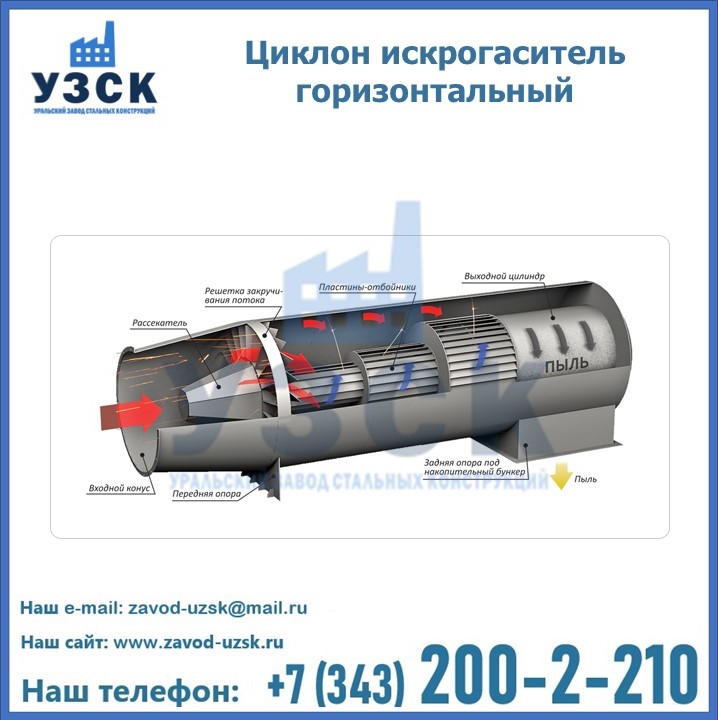 Горизонтальные циклоны-искрогасители ЦГ поставляются в Ногинске в сборке или же транспортными единицами для последующей сборки, если предназначены для работы с большими объемами.