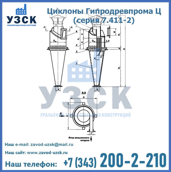 Циклоны Гипродревпрома Ц (серия 7.411-2) высокого качества можно купить в компании «УЗСК» в Ногинске. Наши специалисты предоставят всю необходимую информацию информацию и помогут с выбором модели циклона. Подробные технические характеристики, конструкцию, параметры, ассортимент и стоимость продукции можно также найти на сайте УЗСК.