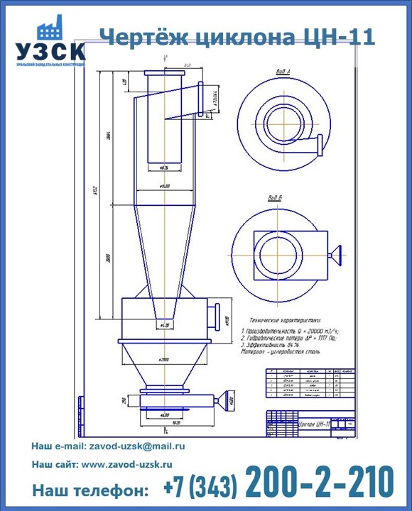 Циклоны ЦН 11 можно купить в УЗСК в Ногинске. Мы предлагаем самые выгодные условия и оптимальную стоимость для приобретения данного оборудования. Сделать заказ очень просто, требуется только оформить заявку на нашем сайте или позвонить по указанному телефону. УЗСК также занимается реализацией и производственным выпуском циклонов и прочих изделий под заказ, цена на нашу продукцию формируется исходя из индивидуальных требований заказчика и специфики производства. Мы производим циклоны из высококачественной нержавеющей стали (толщина 3-4 мм), при необходимости, толщина конечного изделия может быть увеличена.