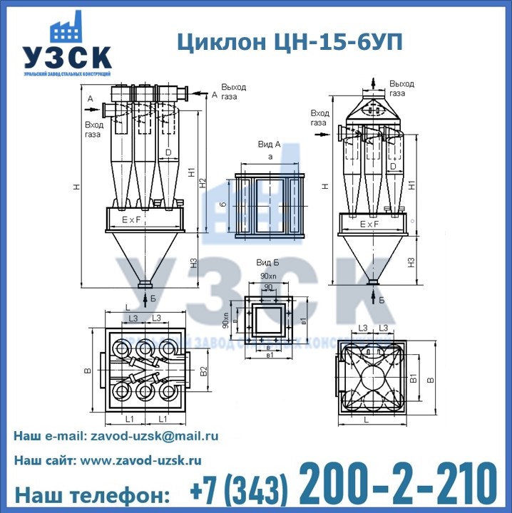 Завод «УЗСК» в Ногинске предлагает большой выбор циклонов ЦН-15-800×6УП и прочих устройств, полностью укомплектованных и готовых к эксплуатации. Мы гарантируем соответствие оборудования всем требованиям ГОСТ и ТУ, износостойкость и высокую производительность предлагаемого оборудования. Уральский Завод Стальных Конструкций изготавливает и продает надежное, эффективное и производительное оборудование, имеющее длительную гарантию и большой эксплуатационный ресурс. Если требуется изготовить циклон нестандартных размеров, то такой вариант выполнения заказа тоже предусмотрен, так как предприятие имеет собственные производственные площади и надежных поставщиков. На все поставляемое или производимое оборудование имеются чертежи и прочая техническая документация. Заказать и купить циклоны или прочее оборудование высокого качества и по доступной цене можно через наш сайт или по указанному в разделе «Контакты» телефону.