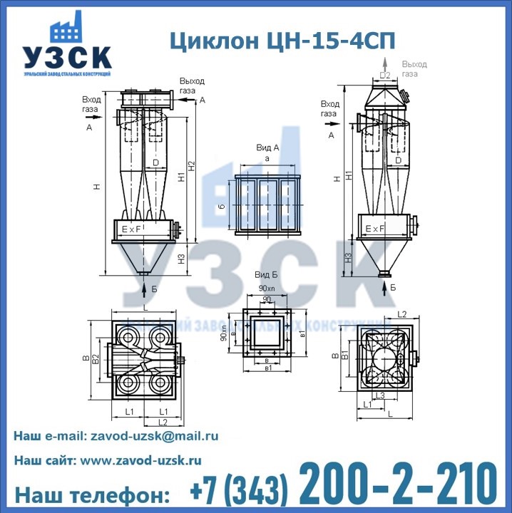 Завод «УЗСК» в Ногинске предлагает большой выбор циклонов ЦН-15-900×4СП и прочих устройств, полностью укомплектованных и готовых к эксплуатации. Мы гарантируем соответствие оборудования всем требованиям ГОСТ и ТУ, износостойкость и высокую производительность предлагаемого оборудования. Уральский Завод Стальных Конструкций изготавливает и продает надежное, эффективное и производительное оборудование, имеющее длительную гарантию и большой эксплуатационный ресурс. Если требуется изготовить циклон нестандартных размеров, то такой вариант выполнения заказа тоже предусмотрен, так как предприятие имеет собственные производственные площади и надежных поставщиков. На все поставляемое или производимое оборудование имеются чертежи и прочая техническая документация. Заказать и купить циклоны или прочее оборудование высокого качества и по доступной цене можно через наш сайт или по указанному в разделе «Контакты» телефону.