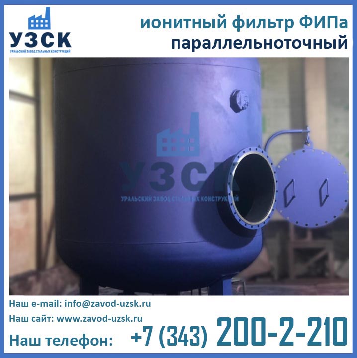 Уральский Завод Стальных Конструкций осуществляет производство ионитных фильтров ФИПа любых конструкция и типоразмеров в соответствии с нормами и требованиями ГОСТ. Возможно также изготовление нестандартных фильтров ФИПа по чертежам заказчика. Завод УЗСК имеет в своем распоряжении собственный аттестованный гидростенд и производит обязательные гидрологические испытания готового оборудования. Испытания фильтров ФИПа I 2,6-0,6 производятся пробным давлением 0,9 МПа (9 кгс/см2).