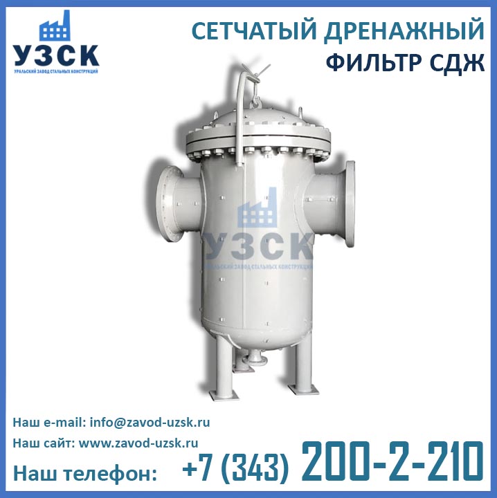 Уральский завод стальных конструкций (УЗСК) осуществляет производство фильтров СДЖ-50 в Ногинске любого конструктивного и материального исполнения, в том числе нестандартных размеров по чертежам и техническим заданиям заказчика.