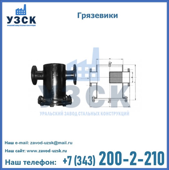 Уральский Завод Стальных Конструкций занимается производством и реализацией грязевиков в городе Ногинск, в наличии устройства горизонтального и вертикального типа, соответствующие всем требованиям и стандартам, в том числе условиям «Правил устройства и безопасной эксплуатации».