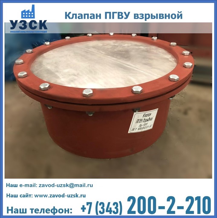 Взрывной предохранительный клапан ПГВУ в Ногинске оборудуется в виде сквозного отверстия (окна) на взрывоопасном элементе энергетических установок. Такое окно закрывается специальной мембраной, а также оснащается створками или материалом, способным легко разрушиться в результате взрыва, что позволяет избежать высокого давления, образуемого взрывом.